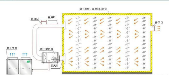 熱泵熱風爐 (有蒸汽鍋爐的配散熱器) (也可使用燃氣) |